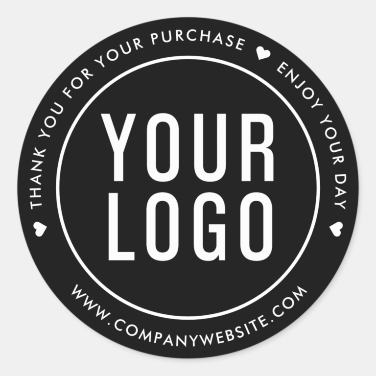 Black Thank You For Your Purchase Stickers With Logo (Front)
