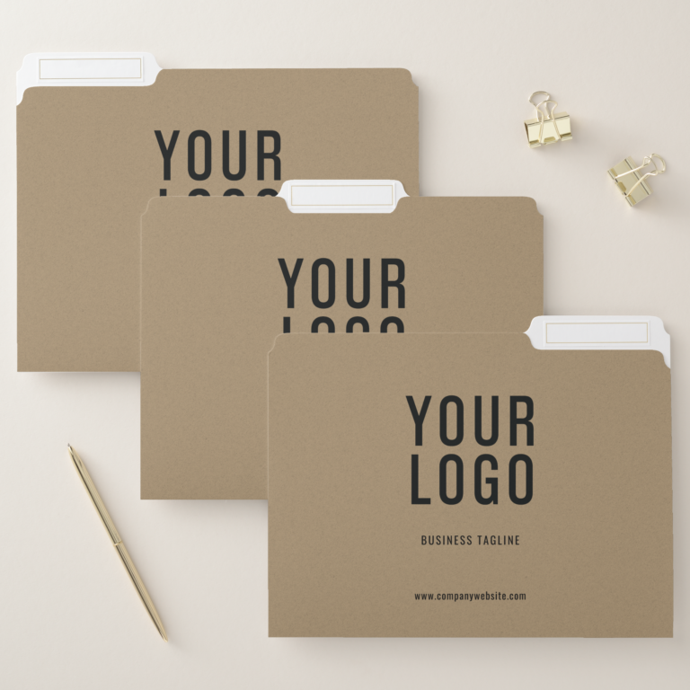 Professional Business Logo Faux Kraft File Folders (Front Left)