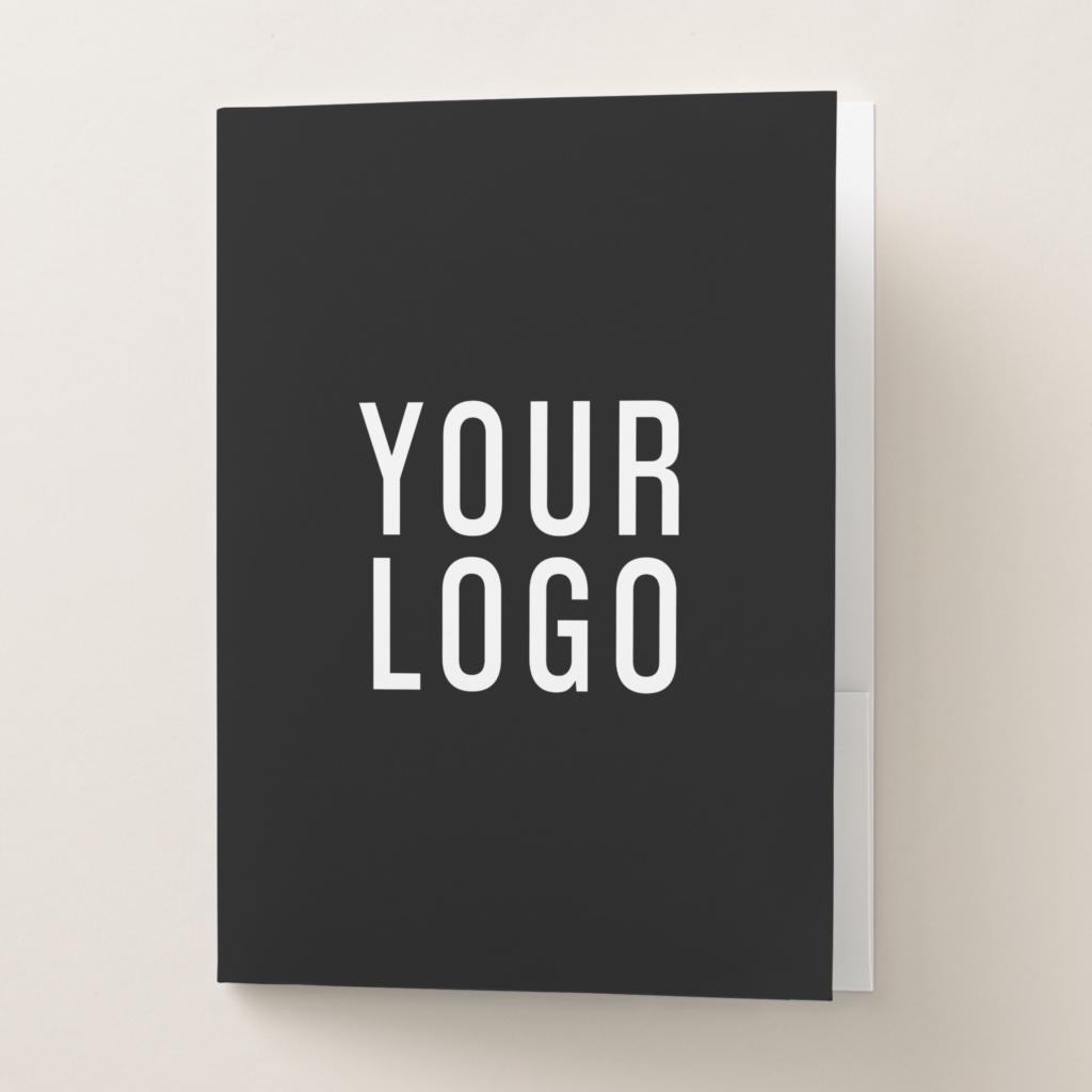 Elevate your professional image with our minimalistic black custom business pocket folders made from smooth semi-gloss paper, perfect for corporate events, trade shows, or client meetings. These 9×12-inch folders feature deep pockets, a convenient business card slot, and customizable front and back colors to align with your corporate branding. Fully personalizable with your designs, logos, or images, they offer a sleek and polished look that enhances brand visibility while providing a practical way to organize presentations, marketing materials, and documents. Sold in sets of 5, these stylish folders are ideal for making a lasting impression and facilitating effective networking opportunities.